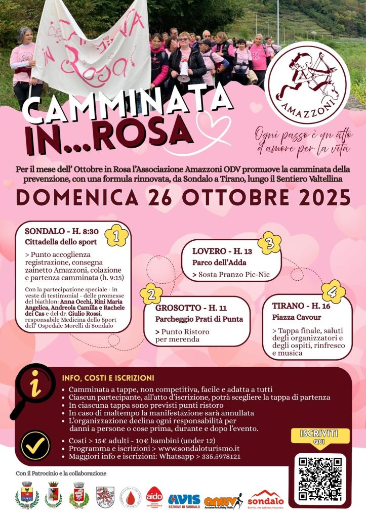 Domenica 26 ottobre l'Associazione Amazzoni ODV invita tutti a partecipare alla Camminata della Prevenzione, un appuntamento rinnovato per celebrare l'Ottobre in Rosa e sensibilizzare sull'importanza della prevenzione.