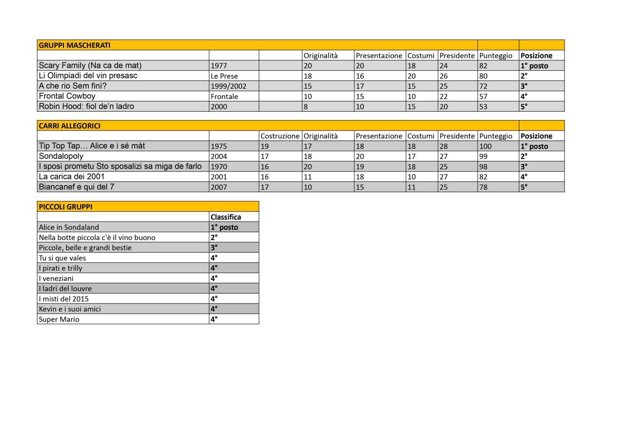 Dopo la lettura dei sonetti di presentazione, momento sempre atteso e divertente, tra applausi e coriandoli, ecco i risultati:
