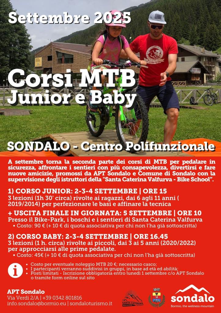 Il Corso Baby di MTB si svolgerà in 3 lezioni presso il centro sportivo di Sondalo (dal 2 al 4 settembre), con appuntamento ogni pomeriggio alle ore 16.45