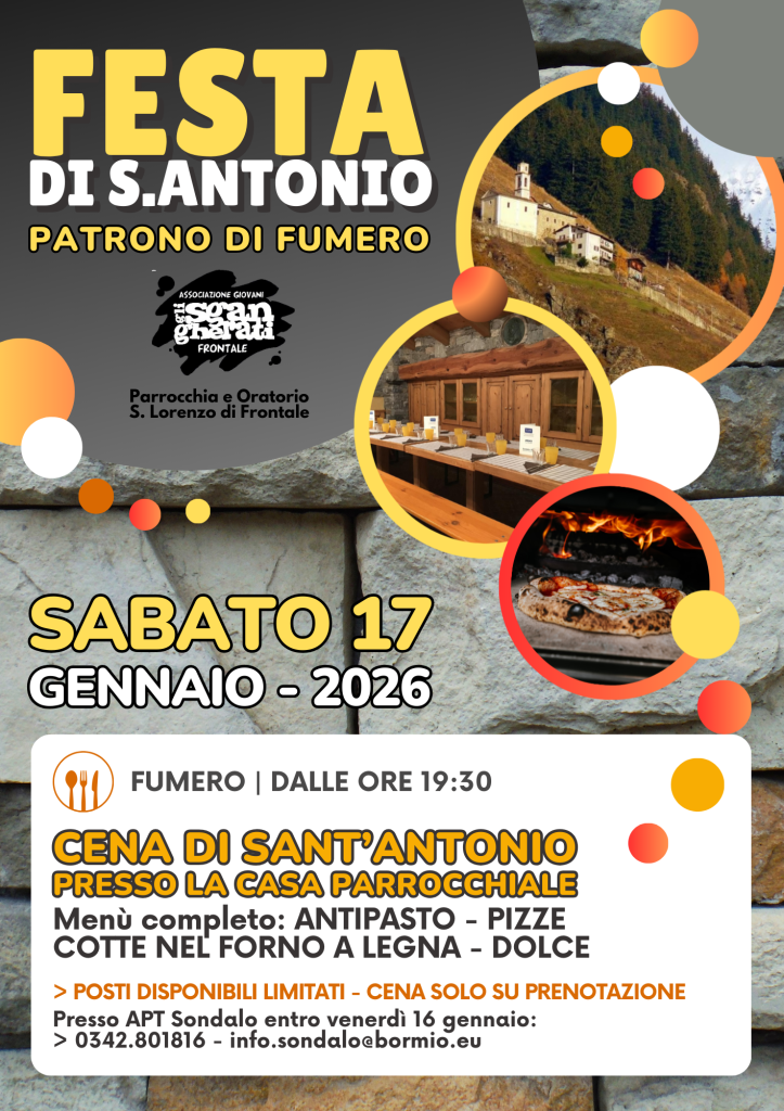 Presso APT Sondalo entro venerdì 16 gennaio: 0342.801816 -info.sondalo@bormio.eu