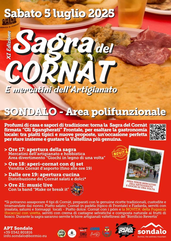 Dopo il grande successo delle edizioni passate, sabato 5 luglio, presso la tensostruttura e l’area verde del Centro Polifunzionale di Sondalo, si rinnova l’appuntamento con l'unicesima edizione della Sagra del Cornàt, organizzata dall’Associazione Giovani Gli Sgangherati di Frontale. Un evento che celebra la scoperta e la valorizzazione delle tradizioni culinarie valtellinesi, per offrire a grandi e piccini una festa all’insegna del gusto e della convivialità.